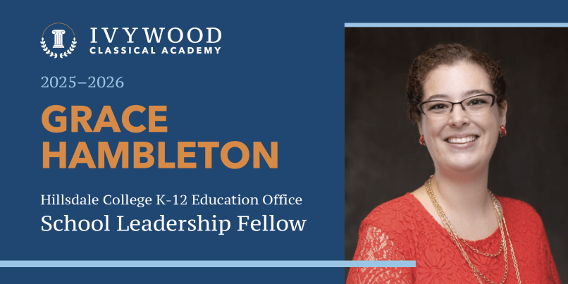 We are excited to announce that Grace Hambleton has been selected as a 2025–2026 School Leadership Fellow through the Hillsdale College K-12 Education Office! “We are proud to serve as Grace’s training ground and look forward to witnessing the many…