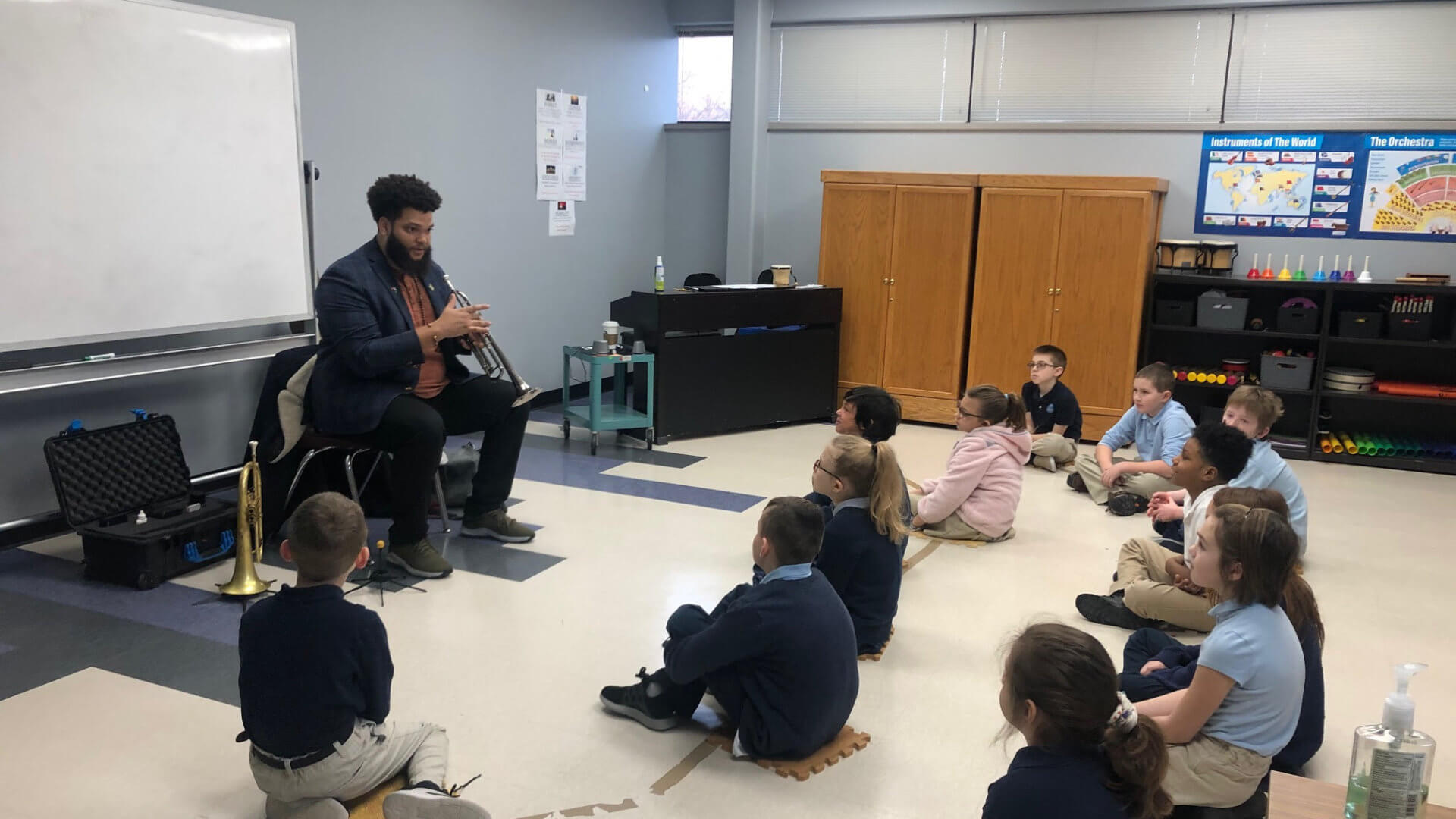 The very talented Mr. Johnson, professional musician & Ivywood parent, was a guest teacher in music class this week. The students learned all about the different parts of a trumpet & a flugelhorn. Mr. Johnson also introduced the students to the song Blue Monk by Thelonius Monk. The students were mesmerized with his musical talents.
