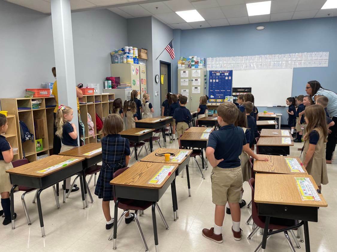 It has been a wonderful first week at Ivywood Classical Academy! The photo above is of Mrs. Whitefield’s class reciting the Pledge of Allegiance to start the day! The scholars are doing a great job learning the routines and classroom procedures. Teachers are starting to introduce the curriculum with the hope of inspiring wonder! It is beautiful to see the Ivywood community come together for another school year! We appreciate everyone’s patience and cooperation as our drop-off and pick-up routines work themselves out.