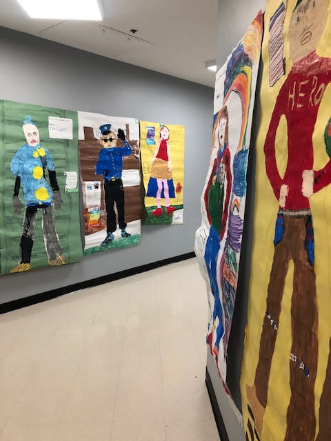 Everyday hero paintingsBack in February, our 3rd graders were learning about heroes during Ancient Roman times.  They discussed what heroes looked like then, what they did during those times and how heroes have evolved and changed over time.  The students were then asked to create the heroes of today.  These everyday heroes lined the Ivywood halls starting in February and still “stood” as our school was closed for COVID.  Reflecting back on this assignment the 3rd graders were given, prior to knowing their world would be turned upside down in the coming months, it is incredible to see that the students already knew who our heroes would be during a world pandemic!  In February, our 3rd graders told us Everyday Heroes of today were, Nurses, Doctors, Police, Teachers, Soldiers, Kind People, Nice People, etc.