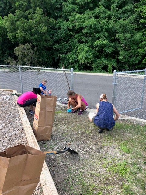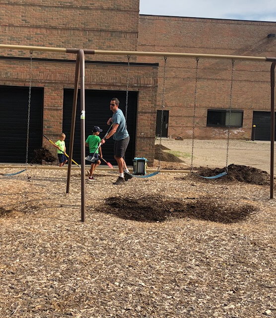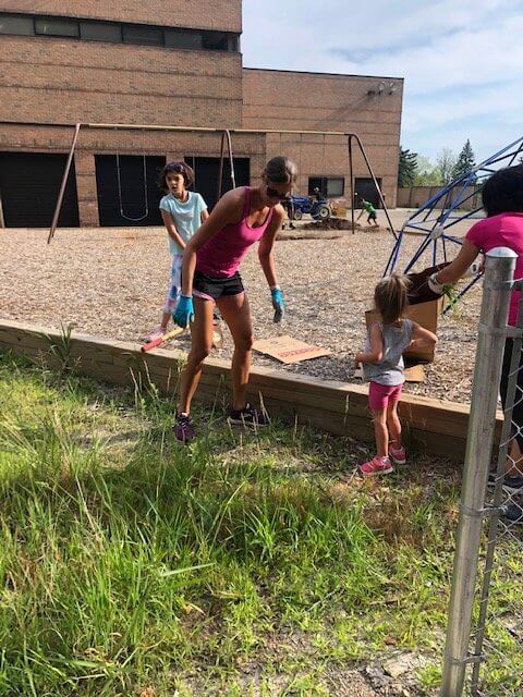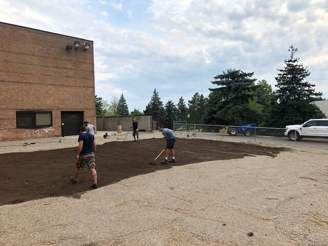 On Wednesday, July 15, Ivywood board members and families came together to work on the school grounds. Together, they weeded the playground, added topsoil and seed to the new green space and mulched both the playground and green space.