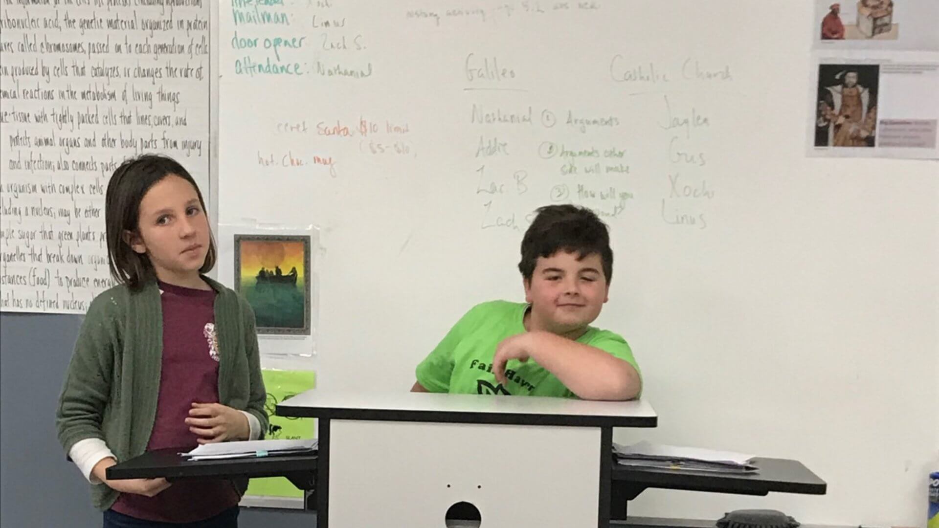 Recently, Ivywood’s fifth graders concluded studying the Reformation, in History. As part of their study, the students did a reenactment of Galileo’s trial from 1633, where his world of humanism collided with the absolute power of the Catholic Church. The fifth graders learned that up until the work of Copernicus and Galileo, people had accepted the Ptolemaic system, which said that the Earth was stationary and at the center of the universe. The Ptolemaic system fit well with the teaching of the Catholic Church that the heavens were perfect and unchanging. The fifth grade class divided into two teams that made arguments for and against Galileo regarding his belief that the sun was at the center of the universe and that the Earth, the other planets, and the stars moved around it. This time, Galileo and his belief that the Earth revolves around the sun prevailed.